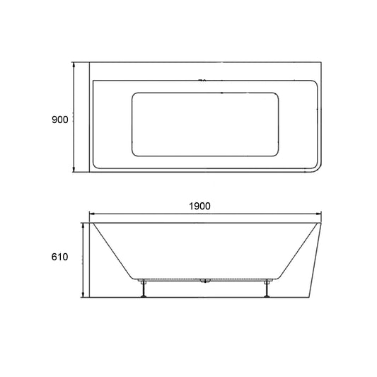 REKA Bañera rectangular lado izquierdo 1900x900x610mm